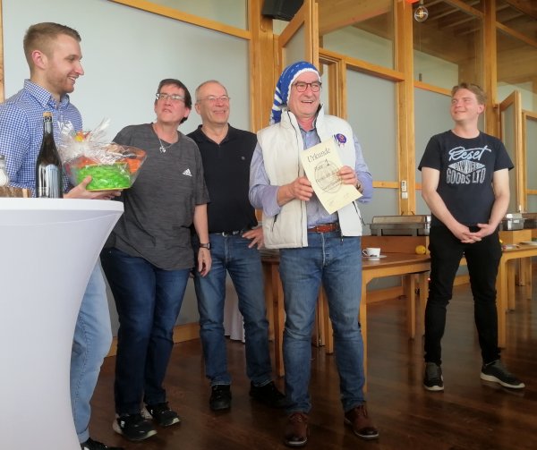 vlnr: Jannik Hacker (1. Vorsitzender des BCKL), Astrid Carl (Veranstaltungsleiterin der Hessekabb), Andreas Heck (2. Vorsitzender des BCKL), Rainer Hassold (mit Hessekabb), Hagen Rösch (Schatzmeister des BCKL)